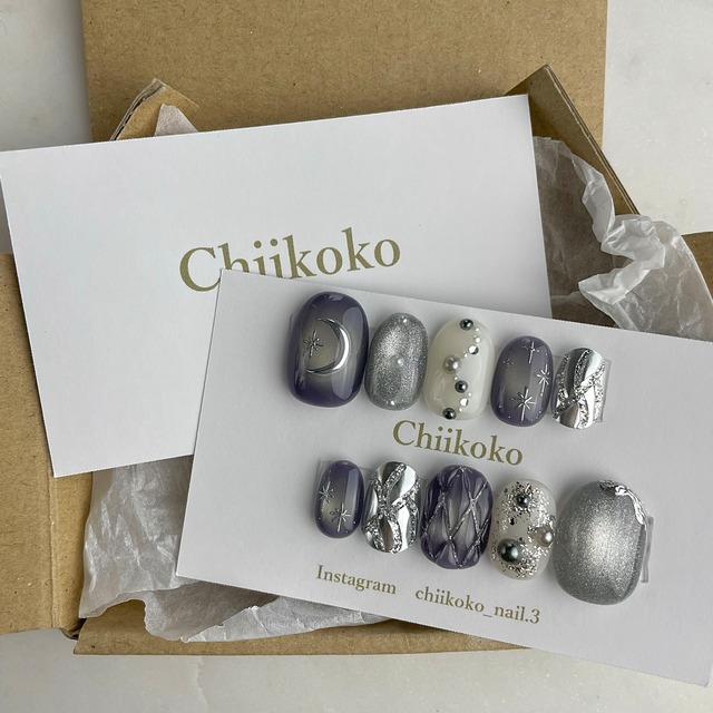 こちらは現品商品です。‥記載のサイズでお作りしている商品を発送致します。サイズをご確認の上ご購入をお願いいたします。 【商品詳細】 チップの種類:ショートオーバル サイズ:標準サイズ 0.3.2.4.7(親指から) カーブ幅16.5㎜.12㎜.13.5㎜.11㎜.9㎜ 直線の縦の長さ:(親指から) 20㎜、17㎜、18㎜、16㎜、14㎜ ✴︎お写真の光の加減、お使いの端末によっては 実際のお色味と若干違う場合がございます。ご了承下さい ※Instagramの投稿より、こちらのお写真を実物に近く撮影できるよう心がけております。 (chiikokoの感覚での意見です) 光の当たり具合などで見え方が変わるジェルなどのお色味もございます。あくまでもイメージとご認識いただけますと幸いです。 ✴︎こちらハンドメイド品です。 検品を行って出品しておりますが、気泡や、ダストなど入ってしまう場合ございます。予めご了承ください。気になる方はご購入をお控えください。 ✴︎チップは海外製品を使用しています。 使用したロットや、デザインにより 同じサイズでも小さく(もしくは大きく)感じる場合がございます。こちらについては返品、交換できかねますのでご了承下さい。 (左右同じサイズでも左右差がある場合ございます。チップのサイズは裏面爪先に記載ございます) 【オプション】 ✴︎備考欄への記入ではご対応できません!✴︎ ネイルチップシール (1回分 150円or2回分 300円) ご希望の方はお選びください。同封致します。 ※ご購入後のキャンセル、追加 不可 ※備考欄への記入での購入 不可 ✴︎量多い6回分をご希望の方は、商品ページより追加の上ご購入下さい! 【コンビニ、銀行振り込みでご購入をご検討されているお客様へ】 ・発送はご入金確認後となります。 【お支払い期間】 ・コンビニ支払い:5日間 ・銀行振り込み:5営業日 それ以降は自動キャンセルとなります。 ご入金無しのキャンセルは、今後のご購入をお断りしております。 (メールアドレスを間違えますと、自動送信メールが届きません。また、メールはBASEが送信しています。自動送信メールは再送できかねますのでご注意下さい。) 【発送について】 出品当日23時までのご入金以外は chiikokoの最短でご入金確認後5日以内に発送いたします。 ✴︎お客様都合により、発送した商品が、発送元(chiikoko)に戻ってきた場合は、着払いで再度発送させて頂きます。宛名作成後の住所変更等もお受けが出来かねますので、ご住所のご確認、お引越しされた方などは特にご注意をお願い致します。 【再入荷リクエストについて】 基本的には同じデザインの商品はお作りしておりません。再入荷リクエストは、似たような商品を作る判断材料とさせて頂きます。ご希望の方いらっしゃいましたら、よろしくお願い致します! 【お願い】 ✴︎ご住所やお名前の間違いがないか、ご注文時、ご注文後の再度のご確認をお願い致します。(自動入力等での間違いが多発しています) ✴︎誤入力については、BASEからのお問い合わせをお願い致します。 ✴︎BASEの使い方についましては、BASEのヘルプ等もご確認下さい。 ✴︎ご登録の内容についてこちらからご登録のメールアドレスにご連絡をさせて頂く場合がございます。その場合、発送が遅れる場合ございます。メールアドレスが間違えておりますと、ご連絡を取ることができません。メールアドレスのお間違いにもご注意下さい。 ✴︎ギフトラッピングは行っておりません。 商品は小さめの箱に入れた梱包でお送りしております。 備考欄へご要望を記載される場合は、あらかじめご要望をchiikokoにお問い合わせの上ご購入下さい。備考欄へご対応のできないご要望の記載頂くことが多くございます。その場合は、メールにてお客様へお返事を行っておりますが、連絡が取れず、発送を行えない場合も多くございます。ご不明点はお問い合わせ頂いたのちご購入頂けますと幸いです。 備考欄への発送、お届けにに対するご要望、ご入金無しのキャンセルは今後のお取引をこちらからお断りさせて頂く場合ございます。 フリマアプリ等へのchiikokoの商品及び画像等の無断転載、出品行為は禁止です。