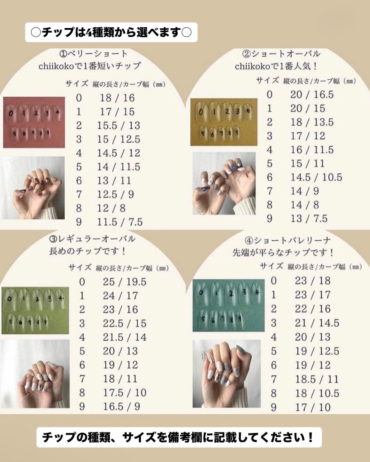 必ずチップの種類とサイズを備考欄へご記入ください!(加工はできません!)↓