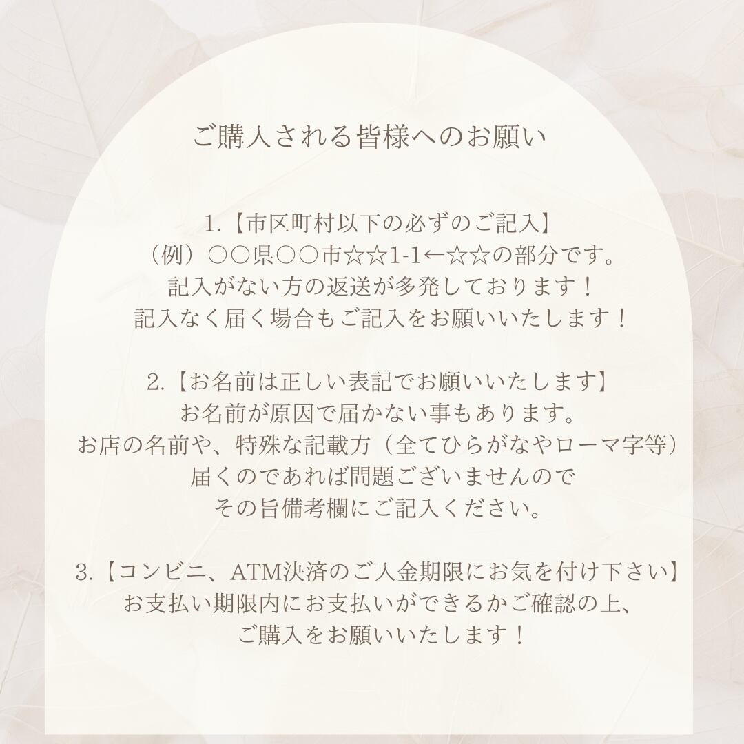 ✴︎ご住所やお名前の間違いがないか、ご注文時、ご注文後の再度のご確認をお願い致します。(自動入力等での間違いが多発しています)