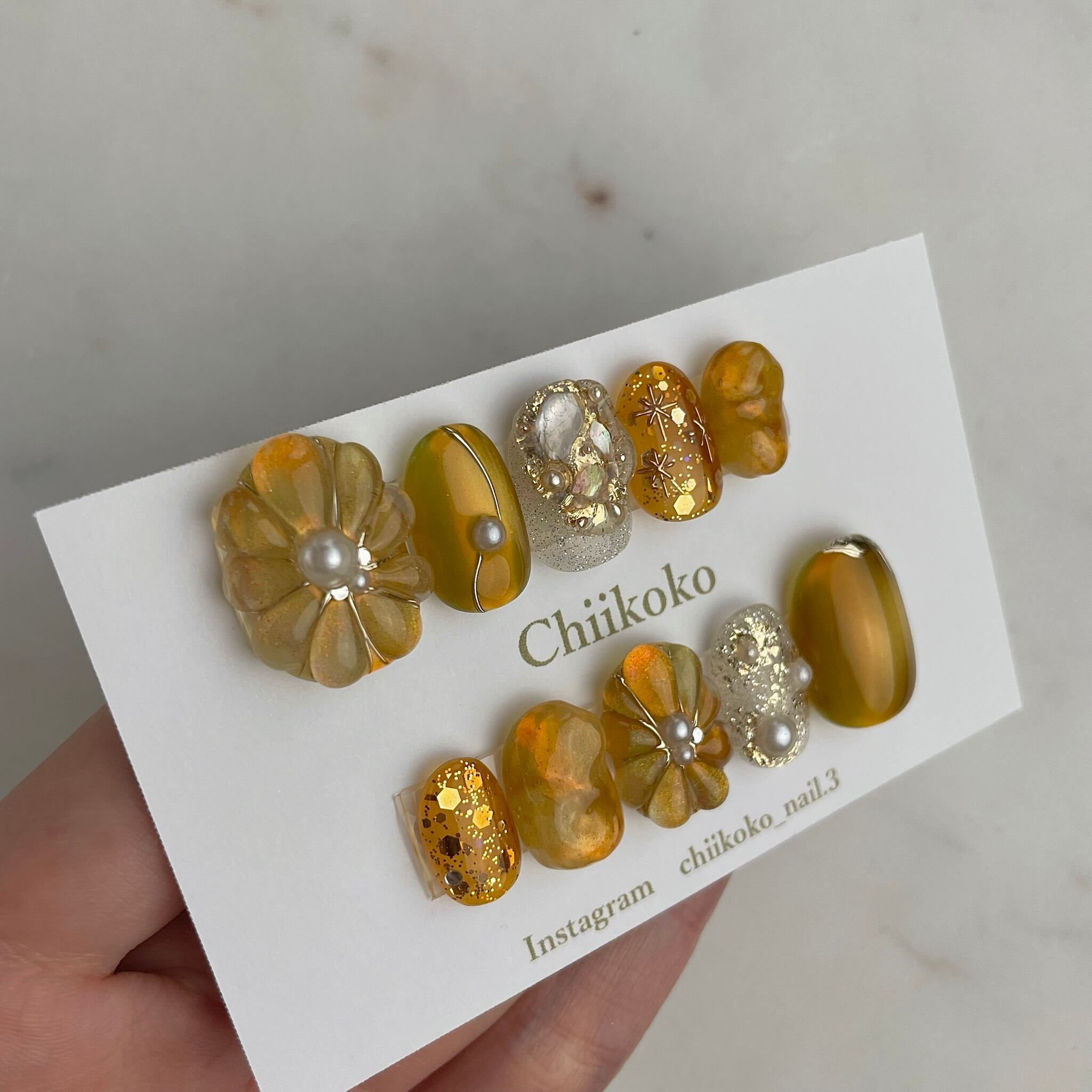 光の当たり具合などで見え方が変わるジェルなどのお色味もございます。あくまでもイメージとご認識いただけますと幸いです。