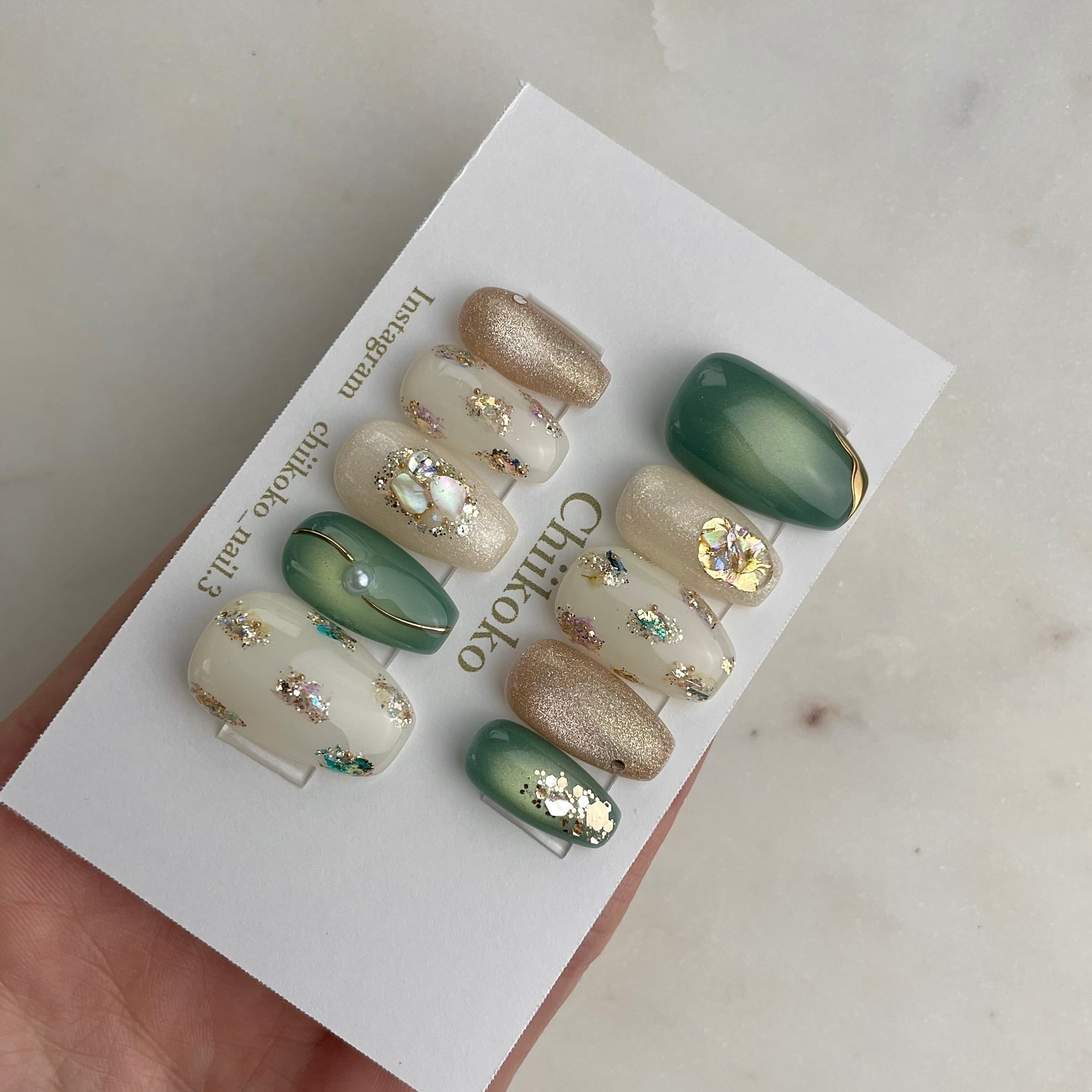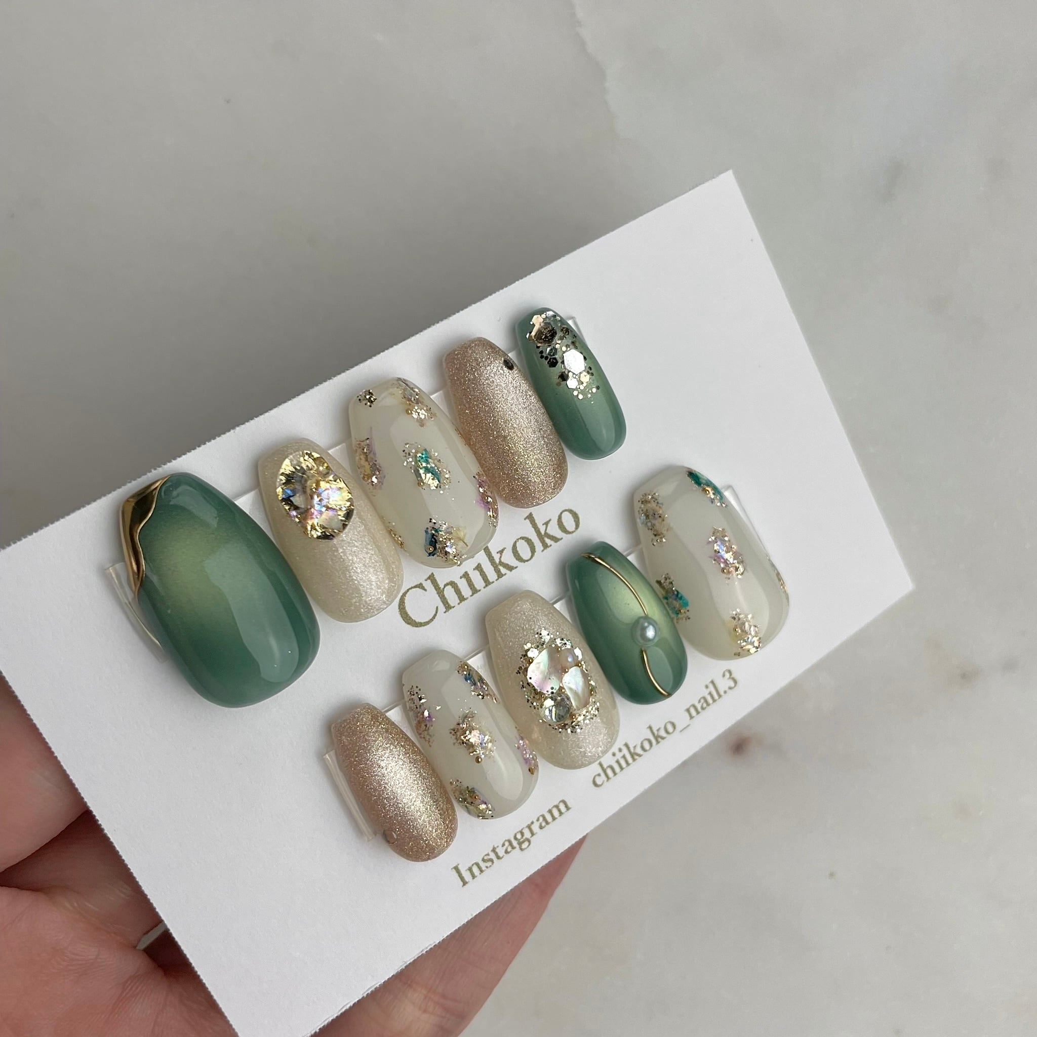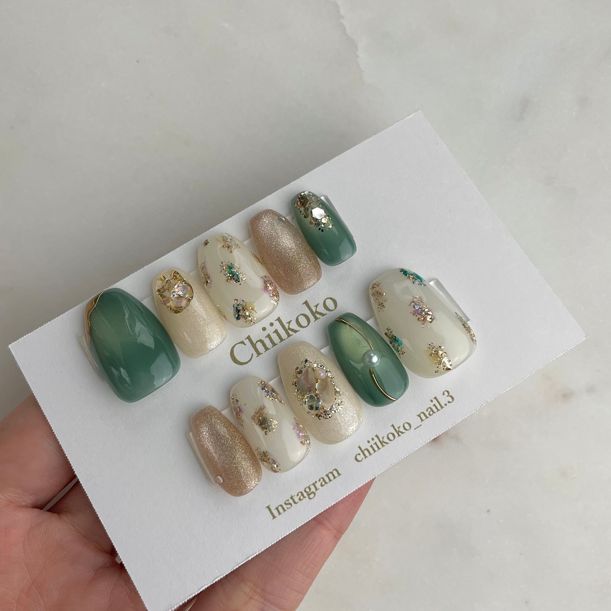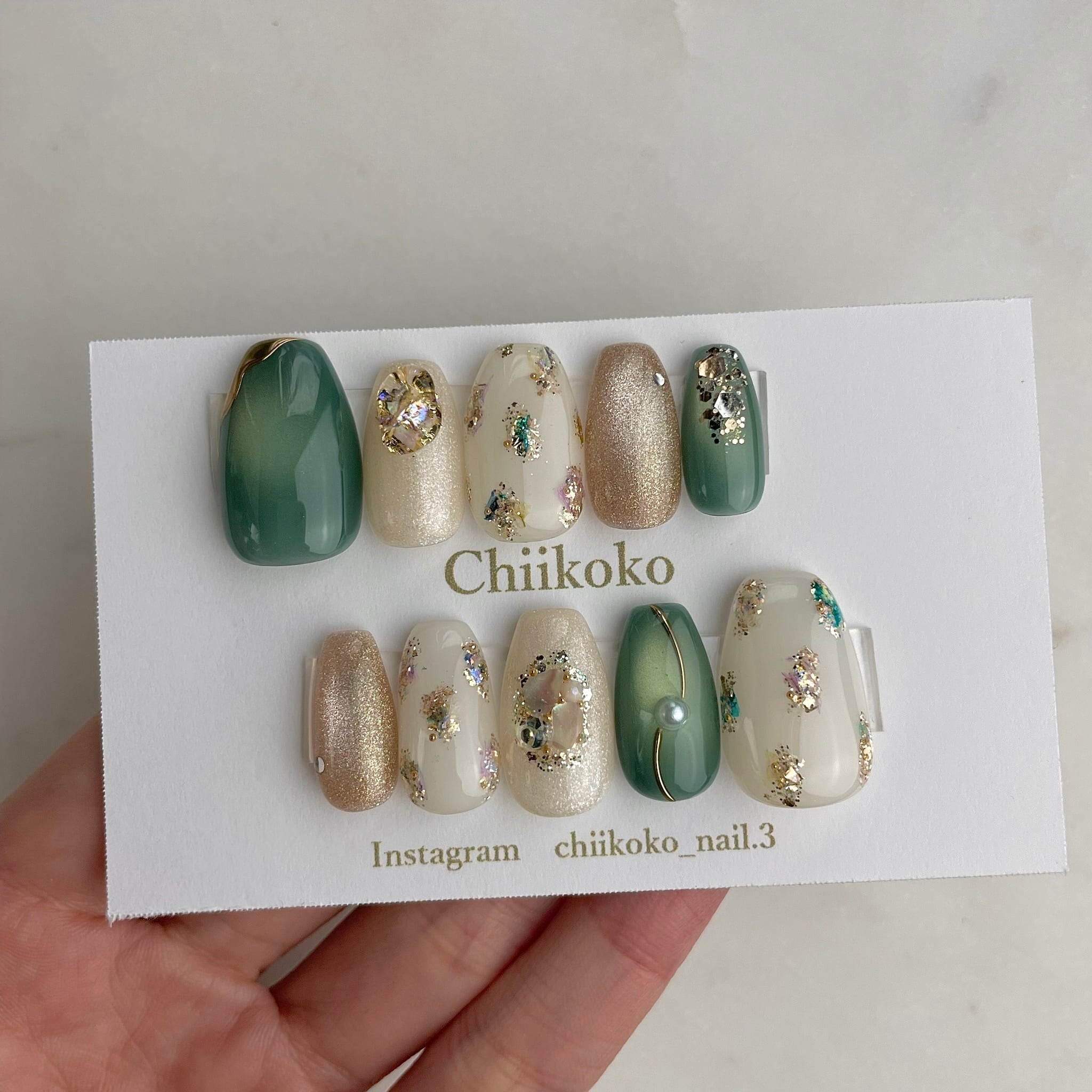 光の当たり具合などで見え方が変わるジェルなどのお色味もございます。あくまでもイメージとご認識いただけますと幸いです。