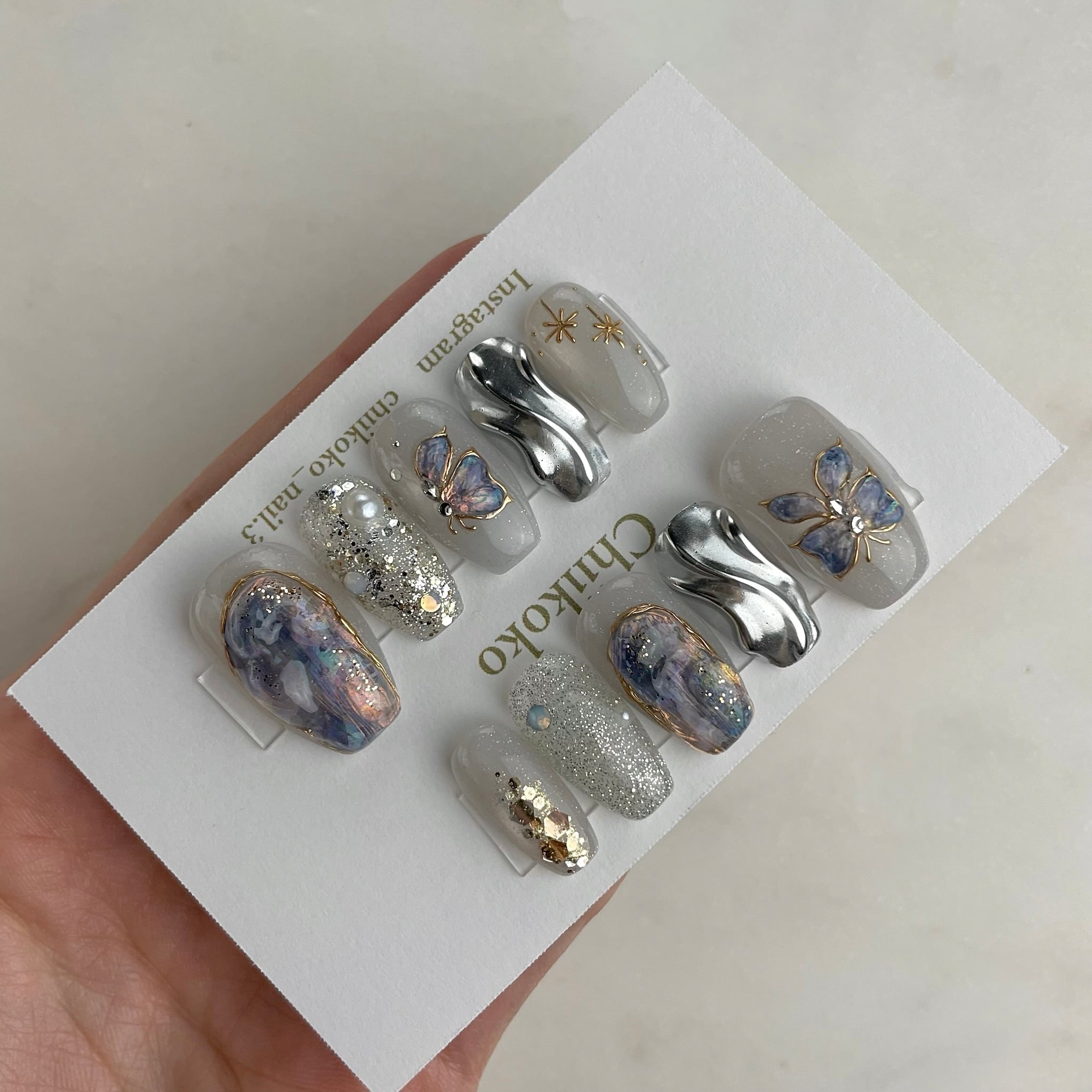 光の当たり具合などで見え方が変わるジェルなどのお色味もございます。あくまでもイメージとご認識いただけますと幸いです。