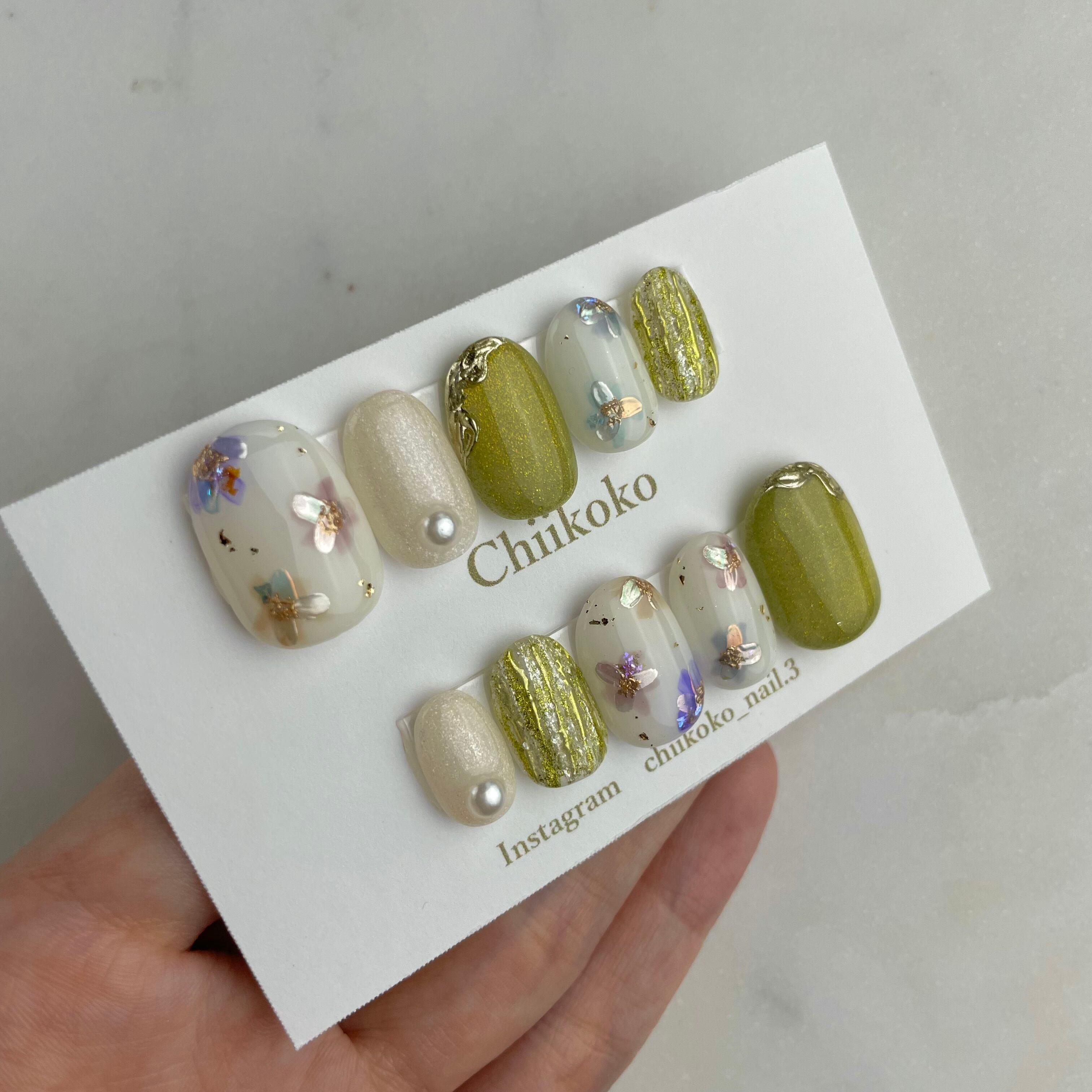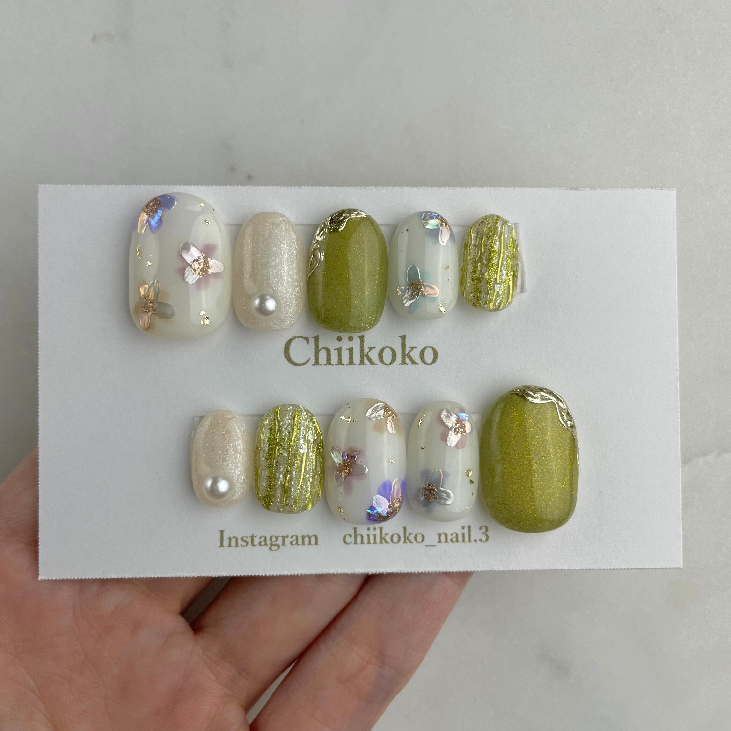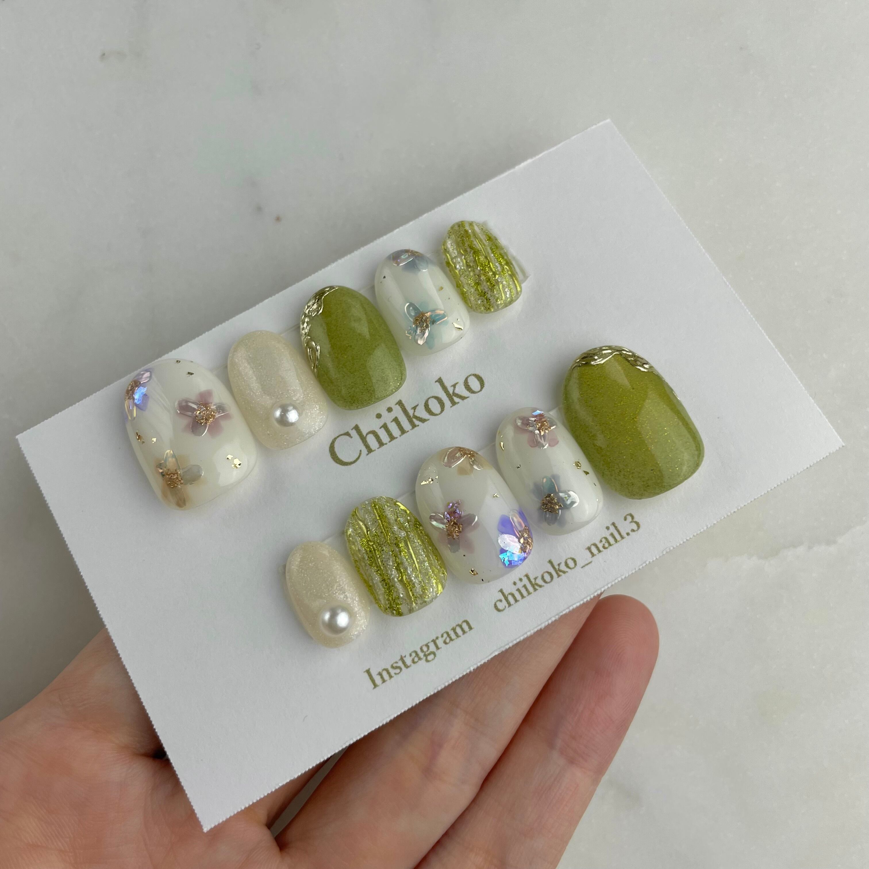 光の当たり具合などで見え方が変わるジェルなどのお色味もございます。あくまでもイメージとご認識いただけますと幸いです。
